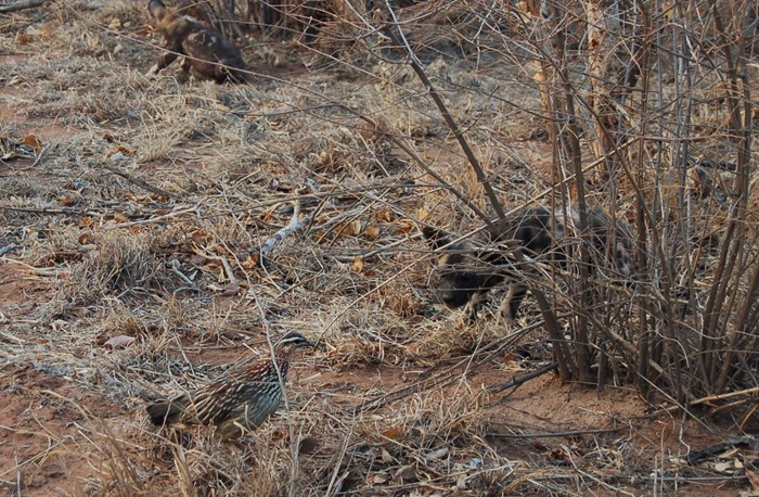 The last sighting I had with the pups I was joined by the Cheng family, who were here for a three night stay. We were lucky enough to watch early signs of hunting instinct playing out in the young hunters as they chased crested francolin around my vehicle. I feel humbled to be able to bear witness to these amazing hunters grow and mature in this Arid Eden of the northwest province.